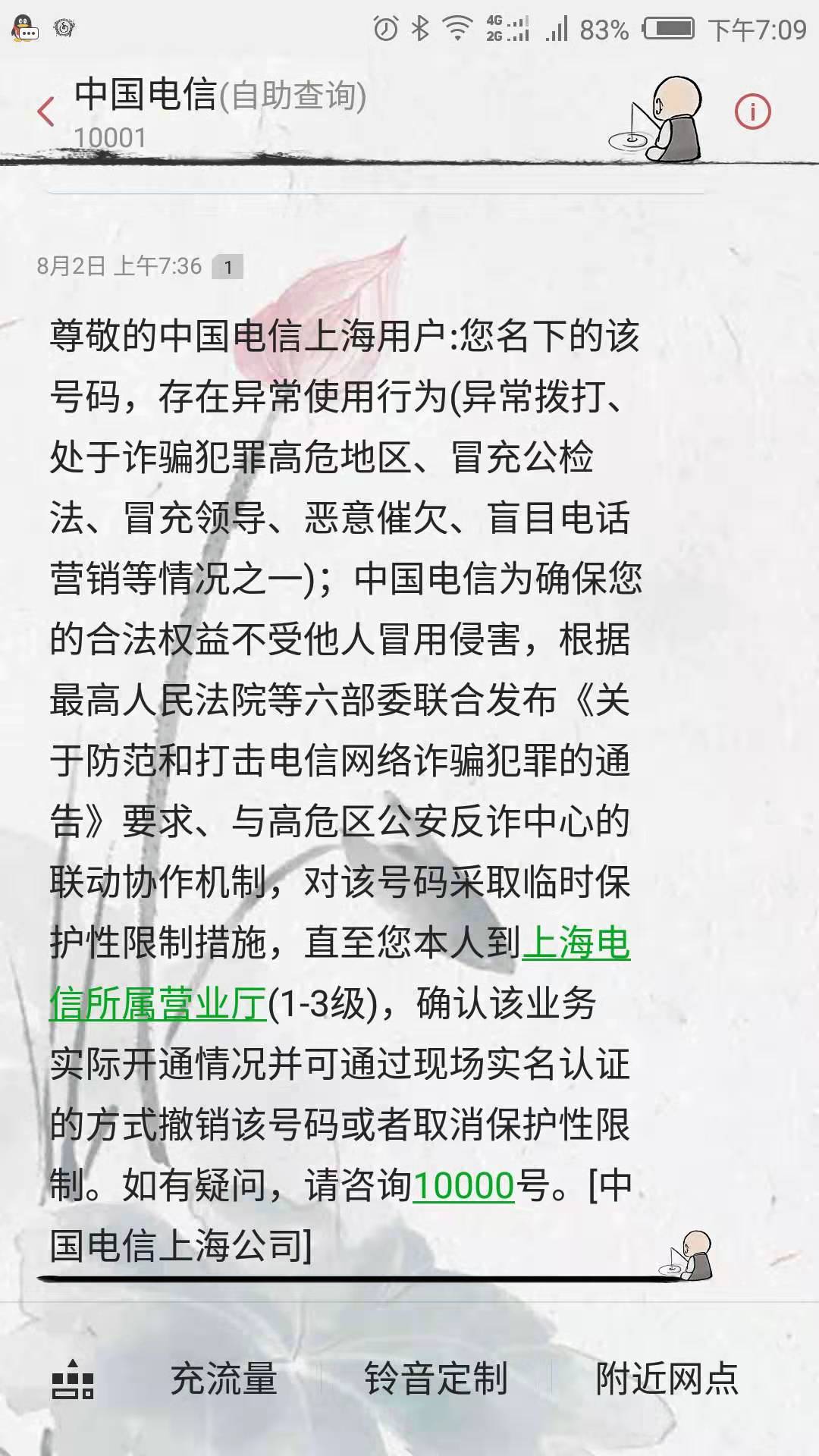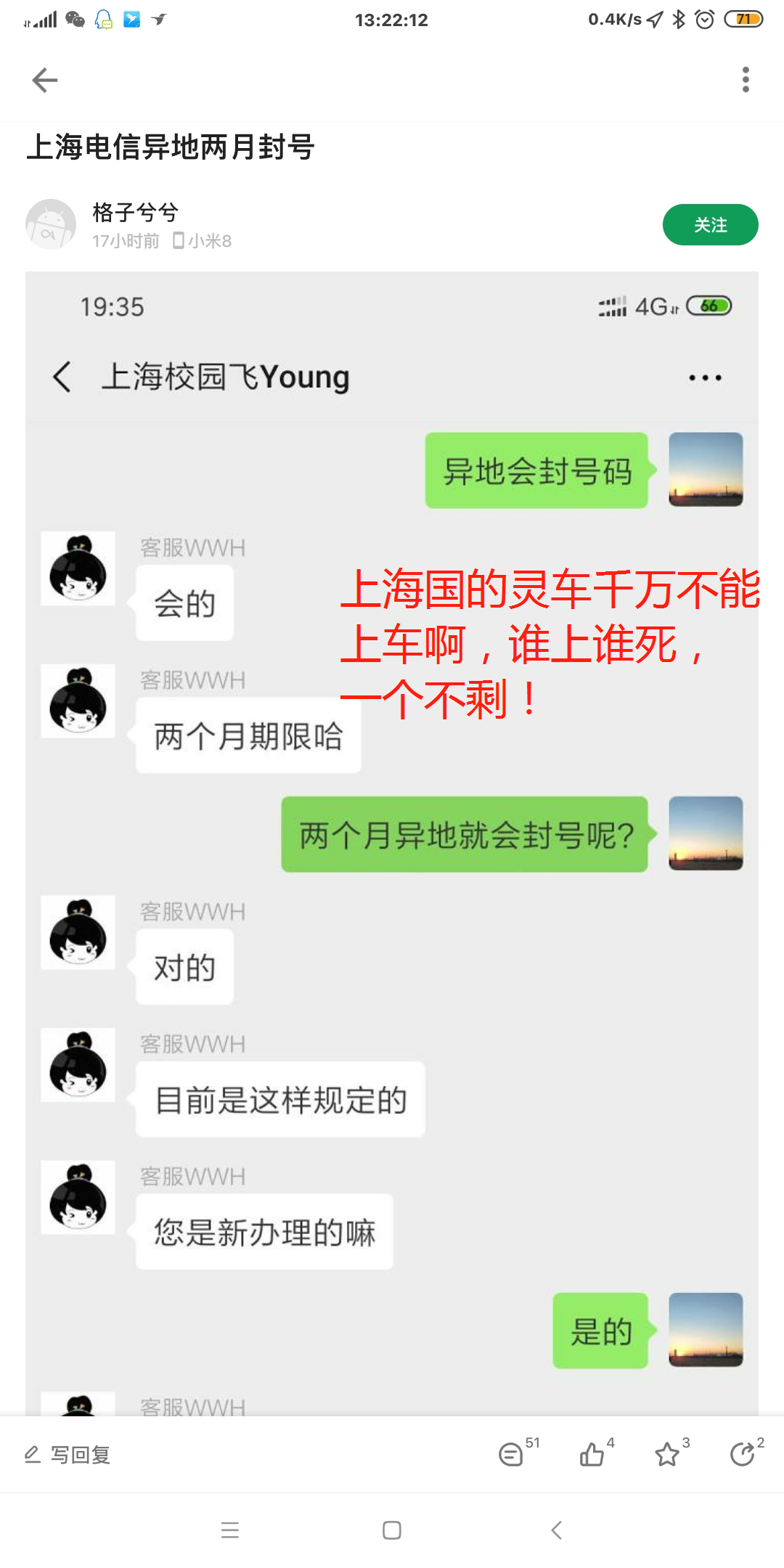 南极仙翁 发表于 2019-8-9 18:34 上海电信,外地申请百分百停机翻车,别问为什么,买5张都停机